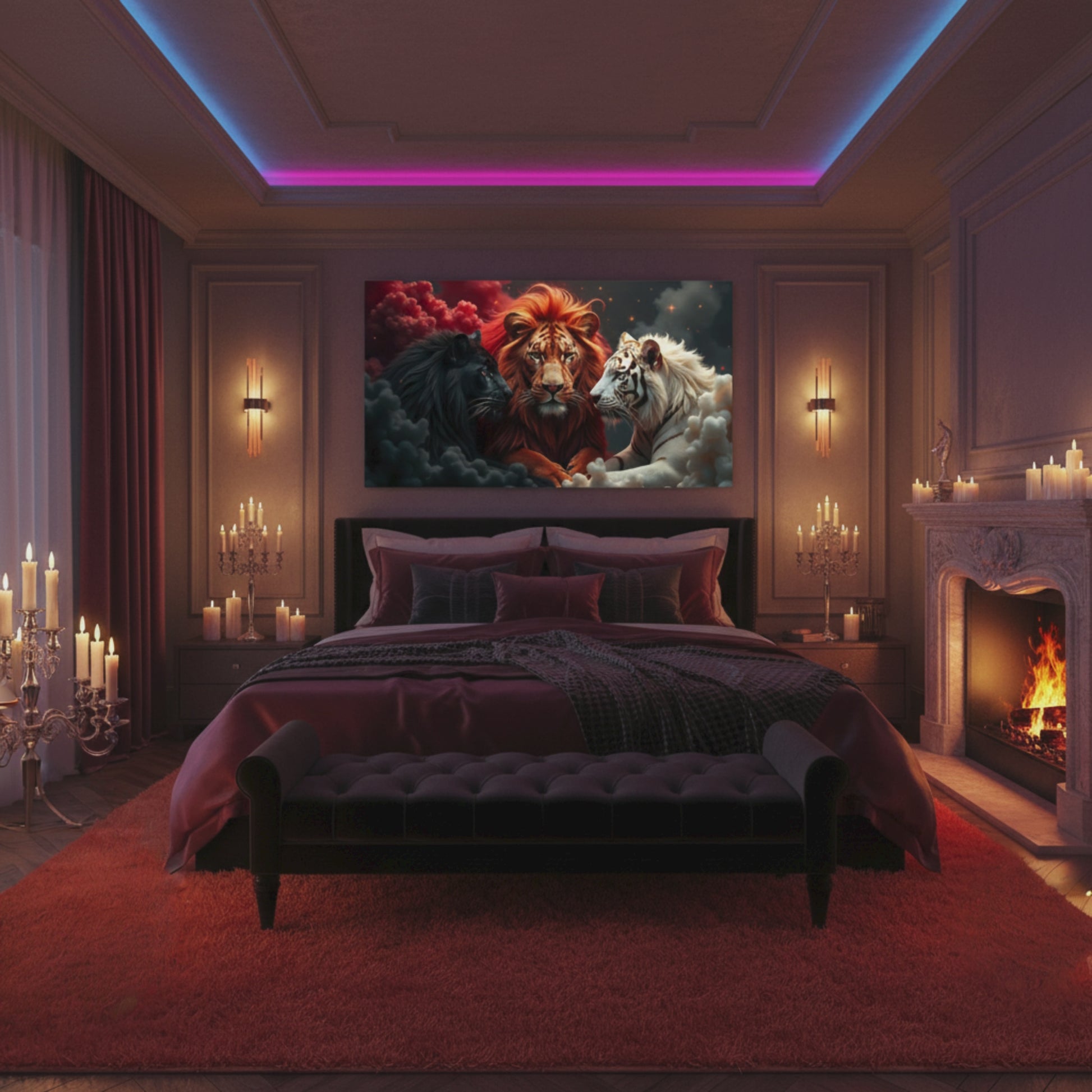 With the Fantascticz Trinity of Embers Diamond Art Kit, you are not just starting a project; you are stepping into a legend. Feel the raw energy with every shimmering jewel you place. From the heart of the fire, the lion emerges, his mane a cascade of burning embers. Beside him, the panther, a being of midnight and mystery, holds the secrets of the shadows. Completing the triumvirate, the white tiger radiates a cool, lunar fire, a rare and beautiful spectacle of strength.